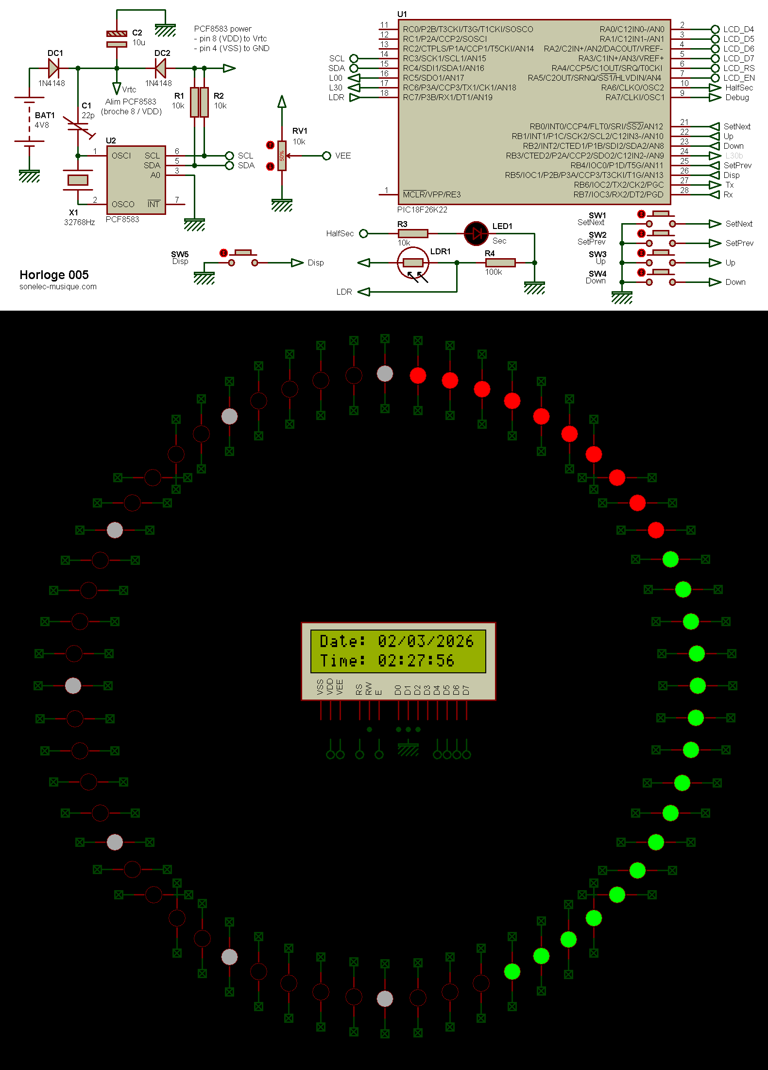 en sera de même pour la couleur de la LED coincidence minutes /