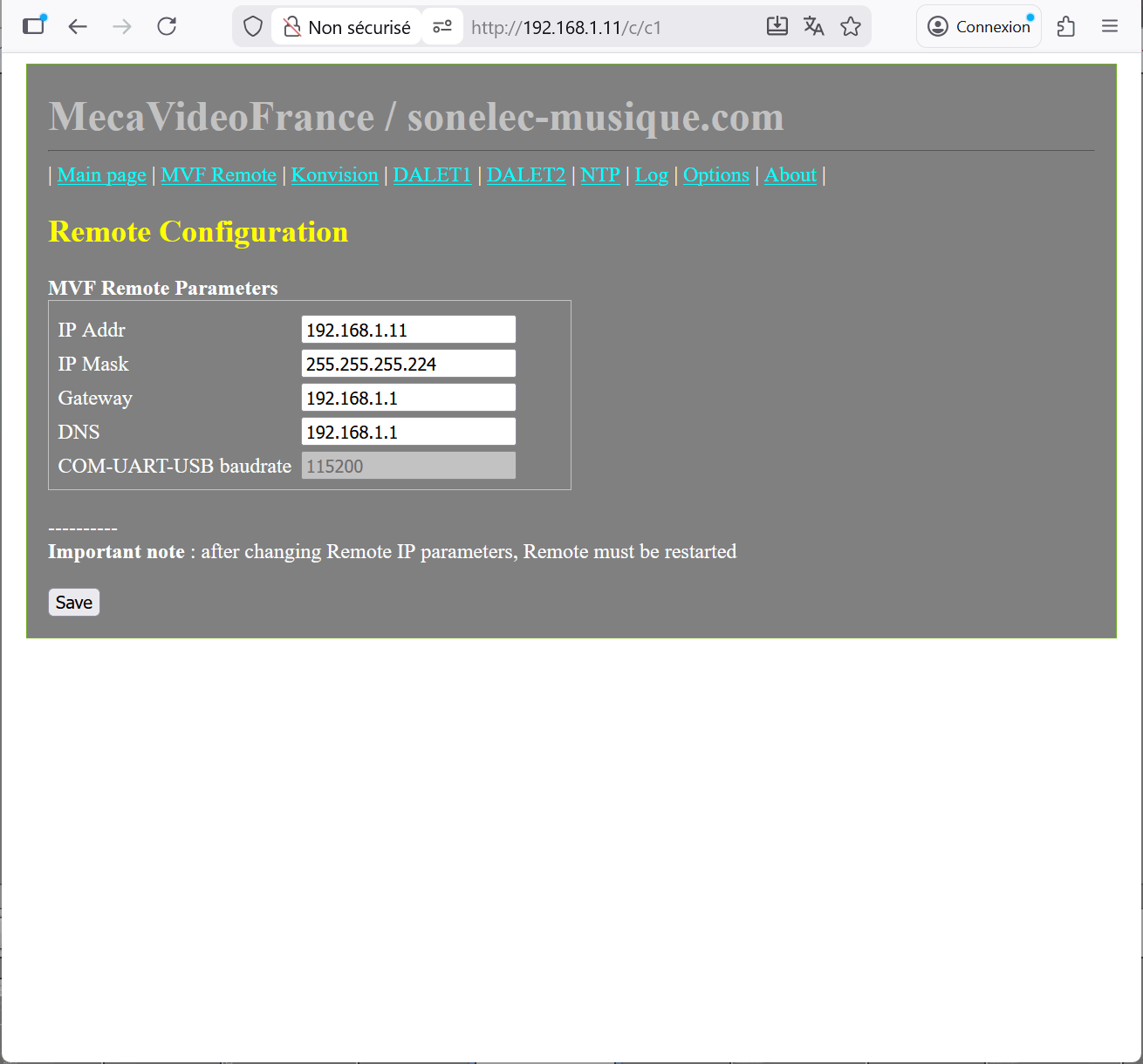 - pour configurer la télécommande (adresse IP, port UDP, etc) via une