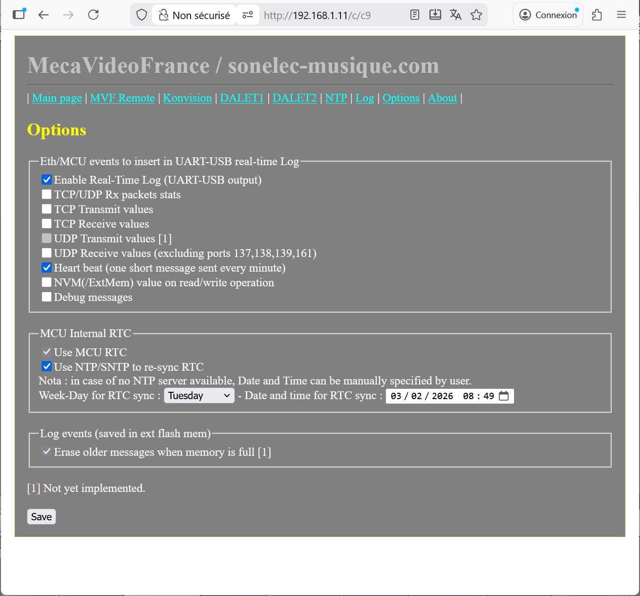 - suivi (log) interne des actions utilisateur et des messages Ethernet