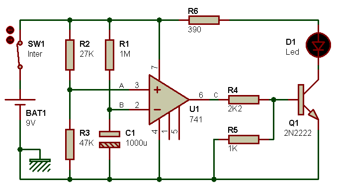 : la résistance R1 n'est là que pour un effet visuel de