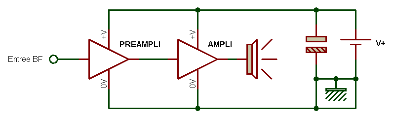 le préampli. L'alimentation d'un ampli BF pouvant être de