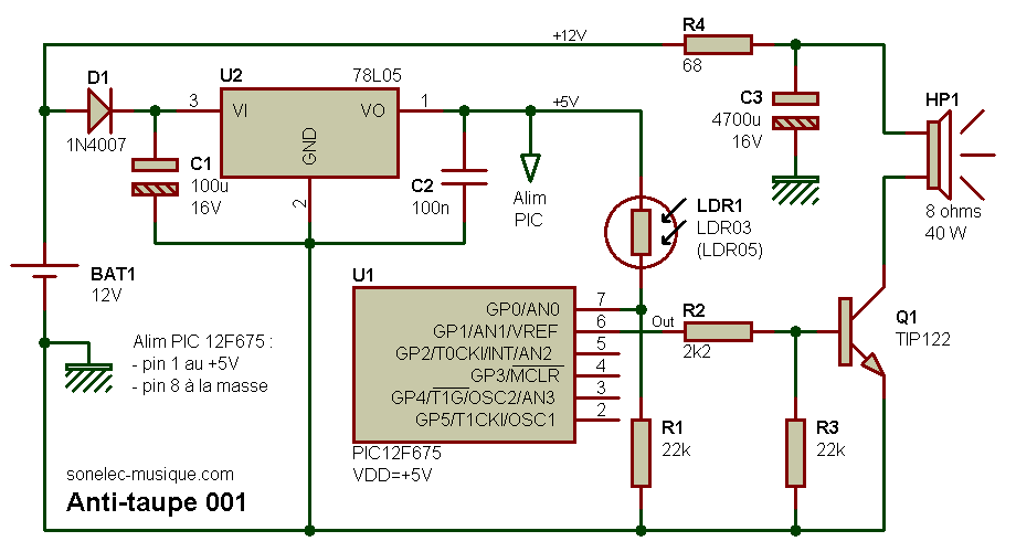 Sa réalisation s'appuie sur un PIC 12F675 pour simplifier au