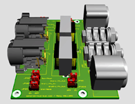 Cela ne se voit pas sur les photos, mais je me suis trompé dans l'empreinte du transformateur LTR110, et cela m'a contraint de tordre légèrement les broches des transformateurs pour les faire rentrer dans le PCB. La correction est bien sûr reportée sur les dessins d'implantation qui suivent.
