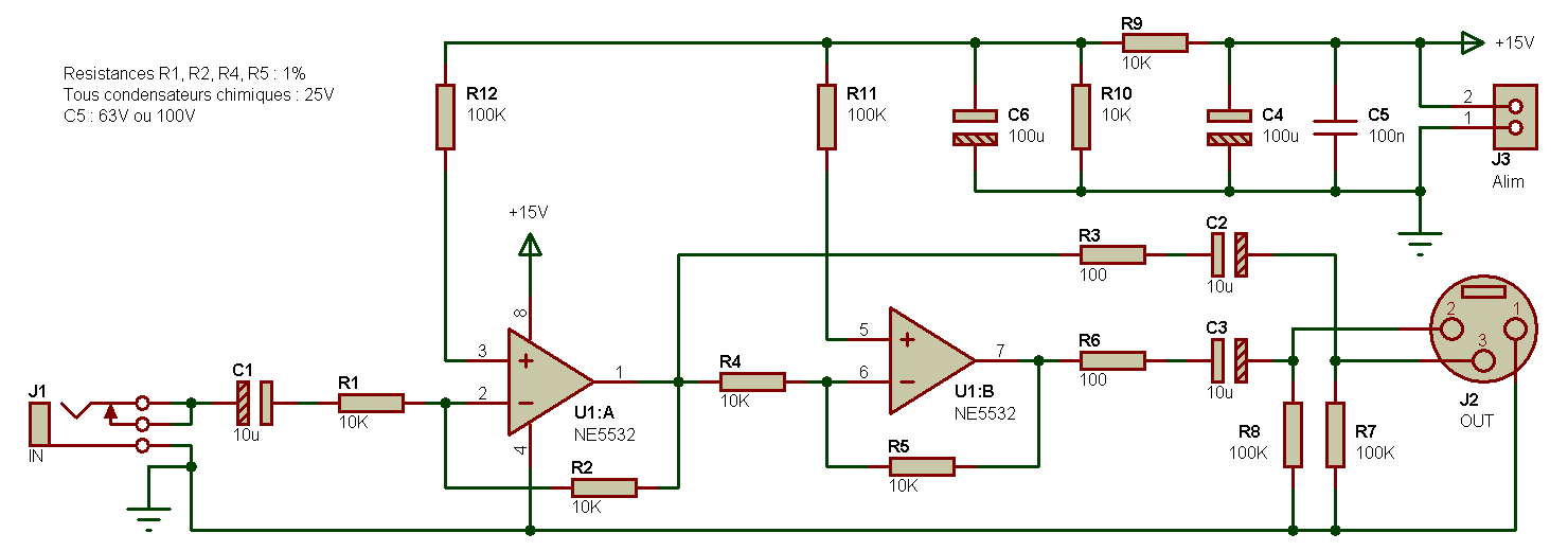 phase qui aboutira sur la broche 2 de la XLR de sortie, alors que le