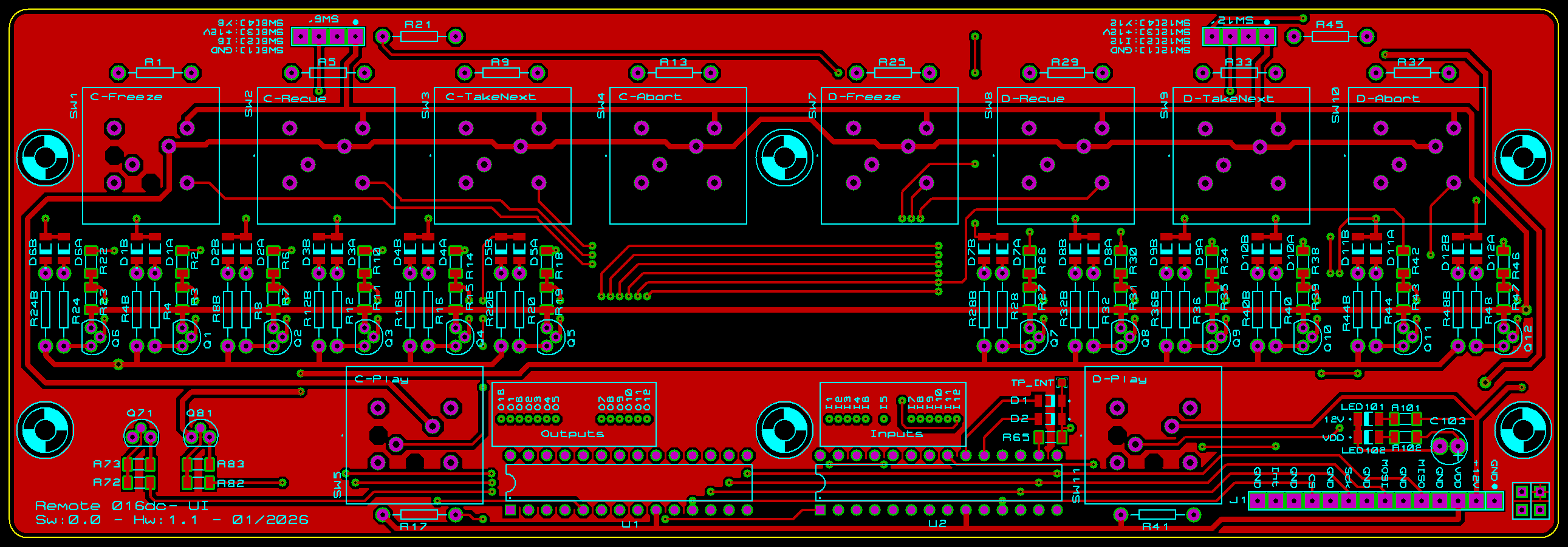 Carte "boutons/LED" équipée de 2x6 boutons pour commande de 2