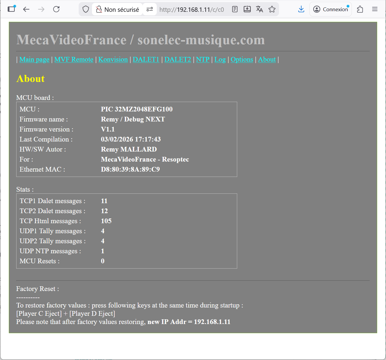 - [MPU] Retour au fonctionnement nominal plus rapide après une rupture de lien Ethernet (1 sec au lieu de 8 sec).