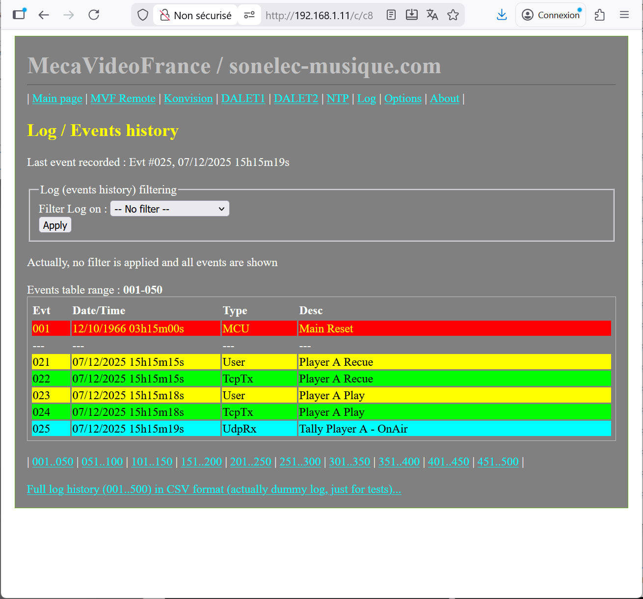 - suivi (log) interne des actions utilisateur et des messages Ethernet