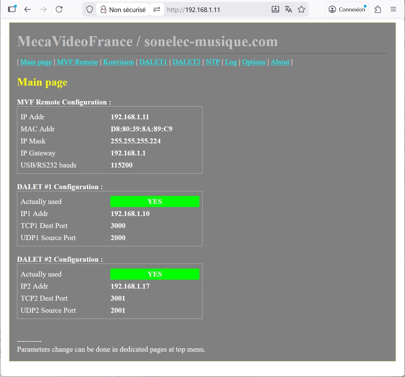 - pour configurer la télécommande (adresse IP, port UDP, etc) via une