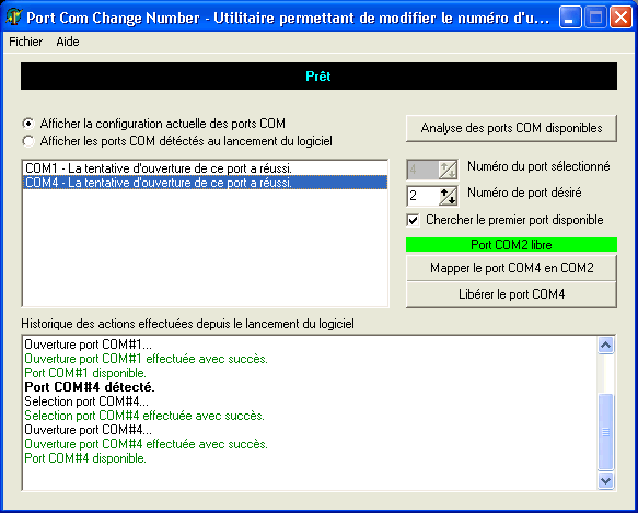 ComPortChangeNum Logiciel analysant les ports série RS232 physiques et virtuel, et permettant le renommage et reroutage (mapping) d'un port vers un autre. Utilisé pour permettre l'utilisation de vieux logiciels avec adresses ports com figées (COM1 à COM4) sur des PC récents ne disposant que de ports virtuels (à partir de COM5). |